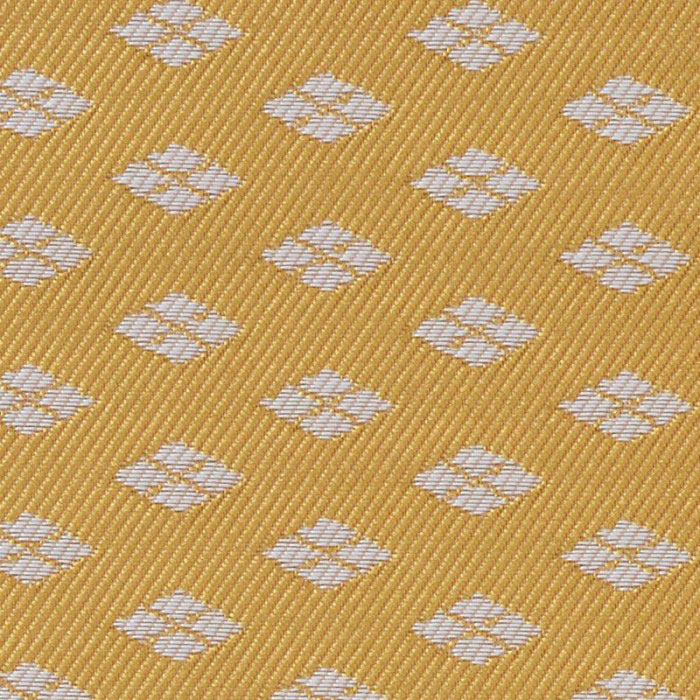 新小菱(黄) 西陣織 錦裂 正絹化繊混紡(巾30cm) 商品説明 やや赤みを帯びた黄色の地に、白く小さな武田菱(四つ割り菱)が配されています。