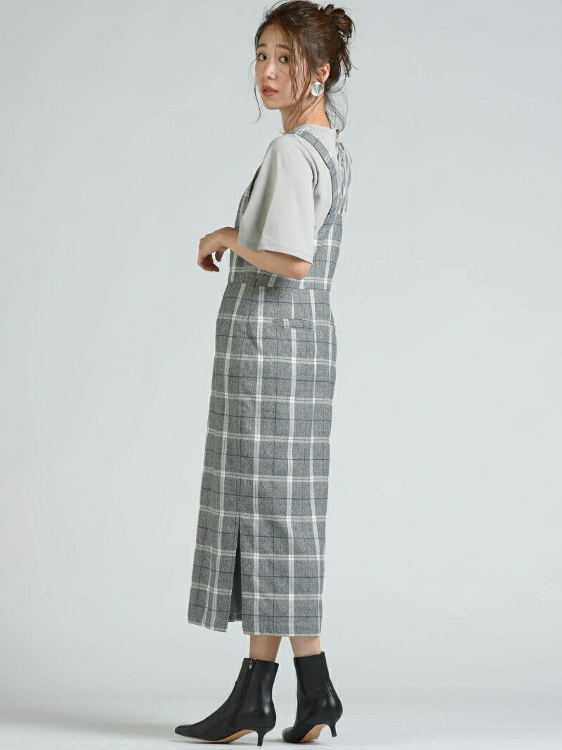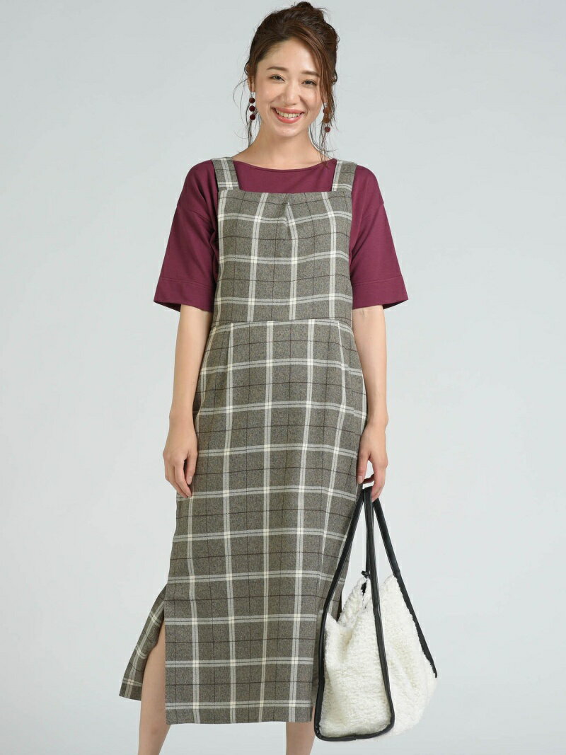 MAYSON GREY(メイソングレイ)【socolla】先染めチェックサイドスリットジャンパースカート【socolla】タイトなラインが大人な印象のジャンパースカート。