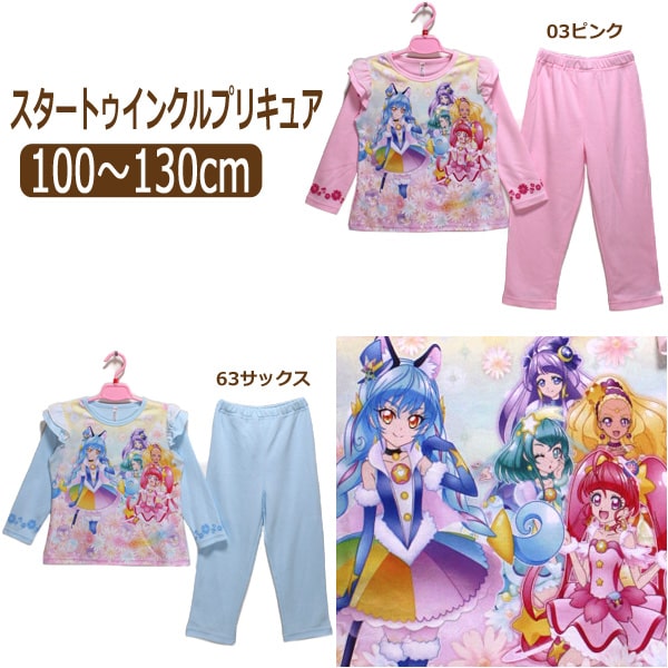 スタートゥインクルプリキュア 光るパジャマ 100cm 110cm 120cm 130cm 03ピンク 63サックス 2486193 BANDAI バンダイ 子供服 女の子 プリキュア 長袖 上下セット パジャマ ナイトウェア 長袖パジャマ キッズ キャラクター 桃 水 zs610