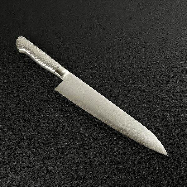 ◆美しく衛生的!◆ ステンレス一体型包丁 牛刀包丁240mm 刃部は軟ステンレスと軟ステンレスの間に高炭素モリブデンバナジュム鋼 (ステンレス系刃物鋼の最高の材料)が挟みこまれており、研ぎやすく、 切れ味も抜群です。